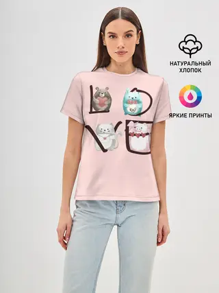 Женская базовая футболка / LOVE зверушки