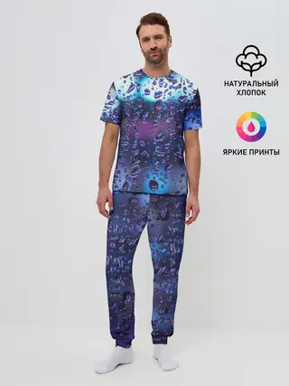 Мужская пижама с брюками / Капли на стекле макро