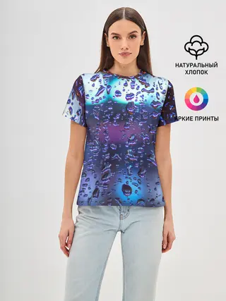 Женская базовая футболка / Капли на стекле макро