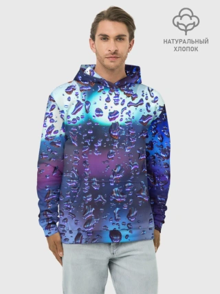 Худи мужской база хлопок / Капли на стекле макро