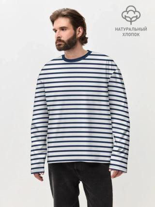 Мужской лонгслив оверсайз хлопок / Тельняшка
