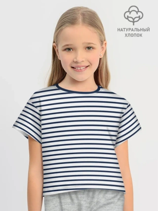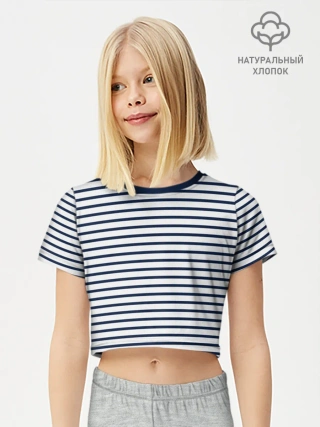 Футболка для девочки укороченная базовая хлопок / Тельняшка