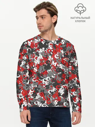 Мужской лонгслив базовый / Камуфляж с буквами F.C.S.M