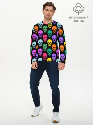 Мужской лонгслив базовый / Разноцветные черепа . Готика