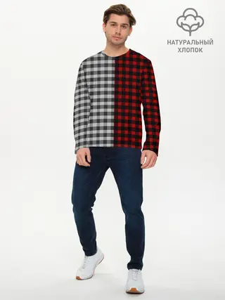 Мужской лонгслив базовый / Красно белая рубашка в клетку