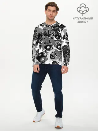 Мужской лонгслив базовый / Ахегао паттерн черный