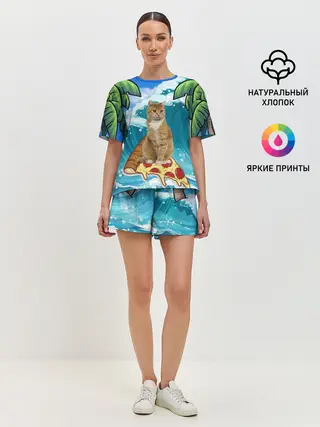 Женская футболка оверсайз / Сёрфинг на Пицце