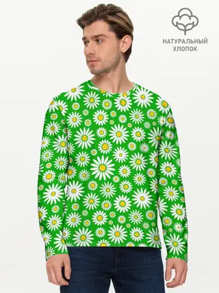 Мужской лонгслив базовый / Ромашки на зелёном фоне