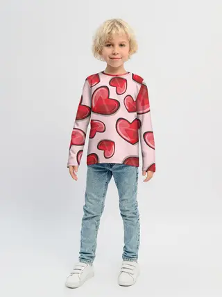 Детский лонгслив / Узор Сердечки для влюбленных