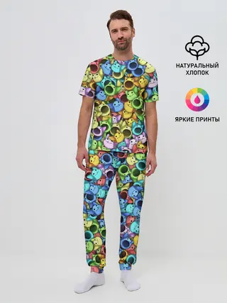 Мужская пижама с брюками / Цветные Поп Котики