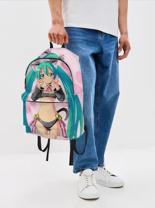 Рюкзак джинсовый / Хатсуне Мику на розовом фоне