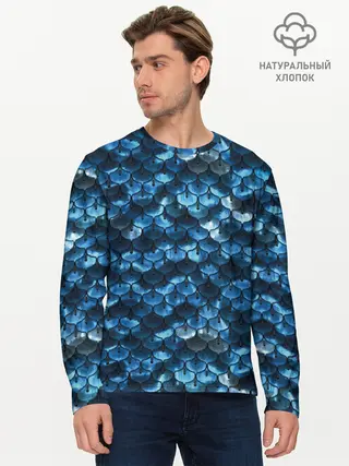 Мужской лонгслив базовый / Синяя чешуя