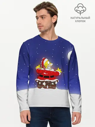 Мужской лонгслив базовый / Гомер Санта Клаус