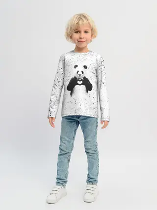 Детский лонгслив / Панда Любовь Сердце Брызги