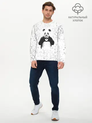 Мужской лонгслив базовый / Панда Любовь Сердце Брызги