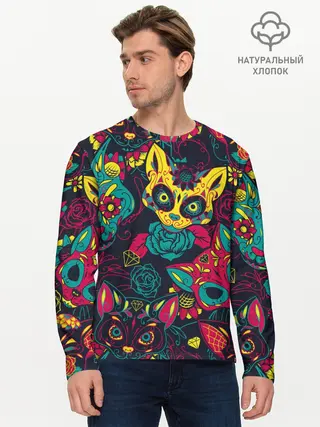 Мужской лонгслив базовый / Кошачий День Мёртвых