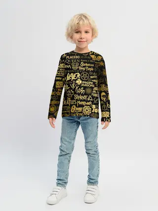 Детский лонгслив / ЛОГОТИПЫ РОК ГРУПП GOLD