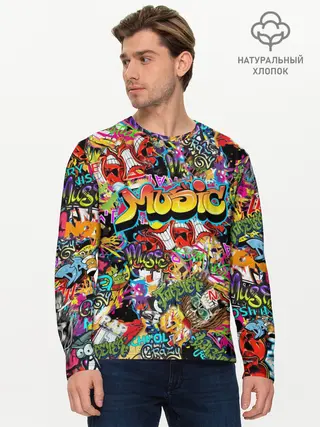 Мужской лонгслив базовый / Граффити. Крейзи мьюзик