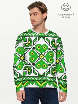 Мужской лонгслив базовый / Славянский Узор Зеленый