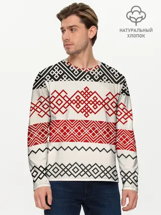 Мужской лонгслив базовый / Славянский узор красно-черный