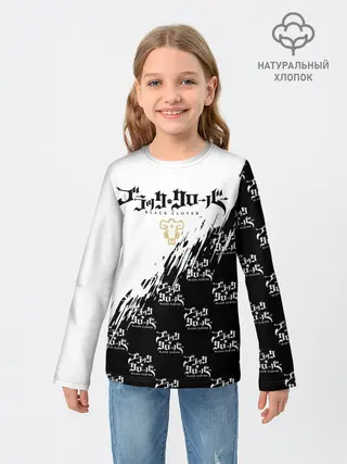 Детский лонгслив / Чёрный клевер черно-белый разрыв