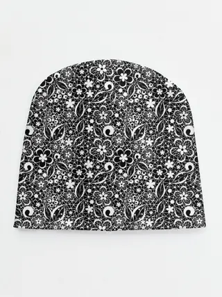 Детская шапка / Кружевной черно белый узор