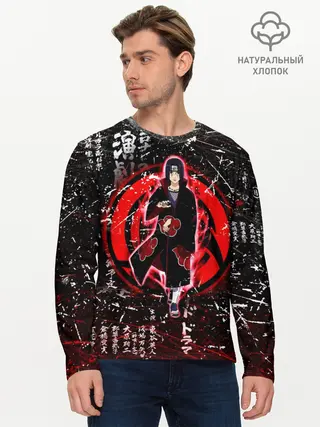 Мужской лонгслив базовый / ИТАЧИ УЧИХА ИЕРОГЛИФЫ гранж