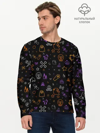Мужской лонгслив базовый / ХЕЛЛОУИН ПАТТЕРН НЕОН / HALLOWEEN NEON
