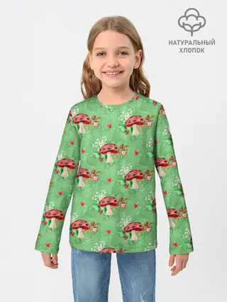 Детская базовая футболка / Грибы Мухоморы паттерн
