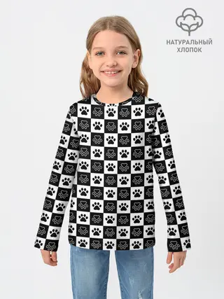 Мужской лонгслив базовый / Следы на Шахматном Фоне