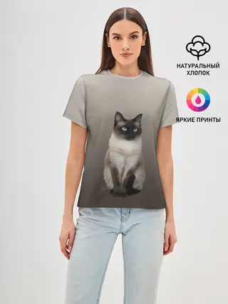 Женская футболка оверсайз / Сиамский кот голубые глаза
