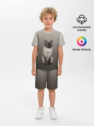 Детская пижама с шортами / Сиамский кот голубые глаза