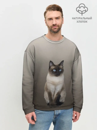 Мужской свитшот базовый / Сиамский кот голубые глаза