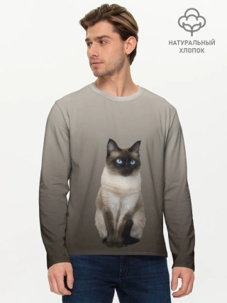 Мужской лонгслив базовый / Сиамский кот голубые глаза