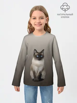 Лонгслив женский. Хлопок / Сиамский кот голубые глаза