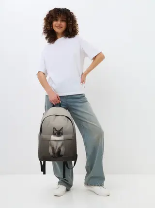 Рюкзак джинсовый / Сиамский кот голубые глаза