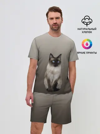 Мужской костюм с шортами / Сиамский кот голубые глаза