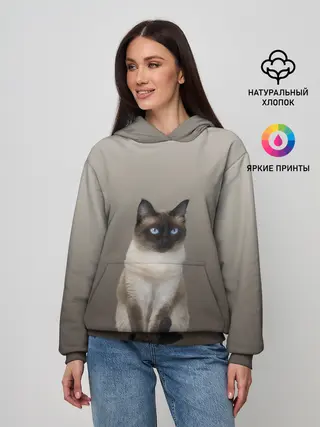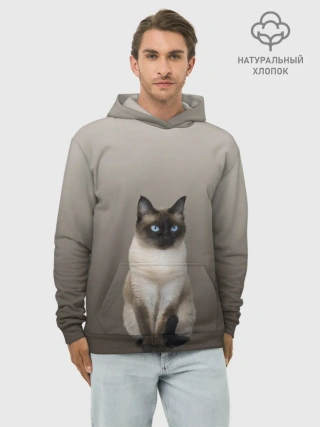 Худи мужской база хлопок / Сиамский кот голубые глаза