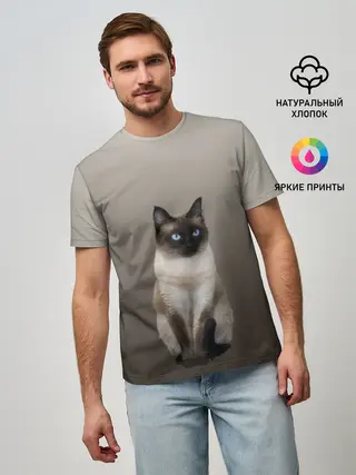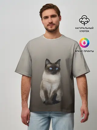 Мужская футболка оверсайз / Сиамский кот голубые глаза