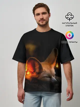 Мужская футболка оверсайз / Лисичка с фонариками