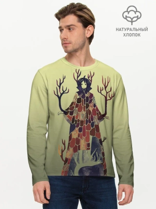 Мужской лонгслив базовый / лесной волшебник акварель