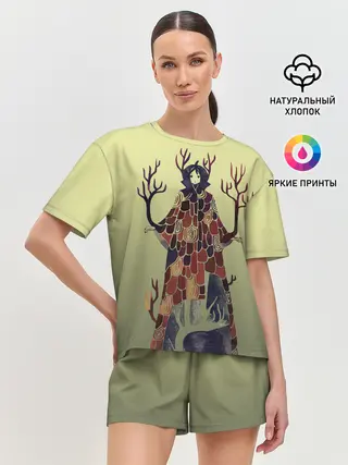 Женская пижама с шортами / лесной волшебник акварель