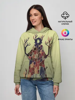 Женское худи / лесной волшебник акварель