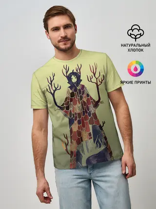 Мужская базовая футболка / лесной волшебник акварель