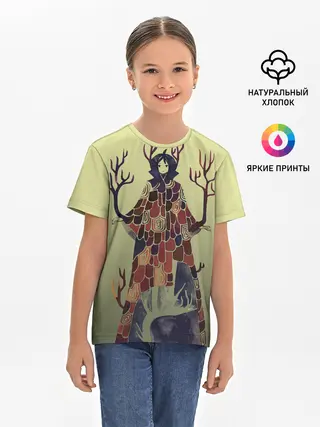 Детская базовая футболка / лесной волшебник акварель