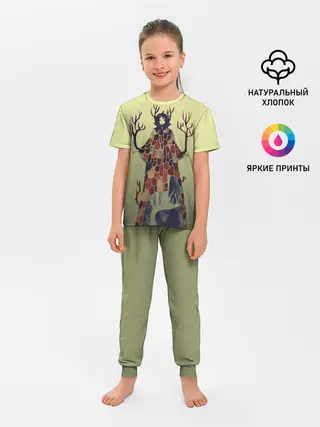 Детская пижама с брюками / лесной волшебник акварель