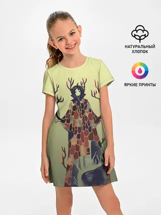 Детское платье / лесной волшебник акварель