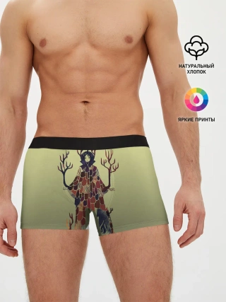 Мужские трусы боксеры / лесной волшебник акварель