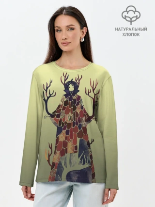 Лонгслив женский. Хлопок / лесной волшебник акварель