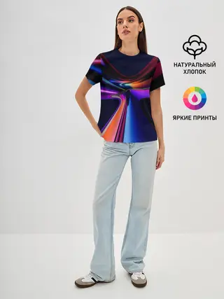 Женская базовая футболка / Красочные светящиеся линии